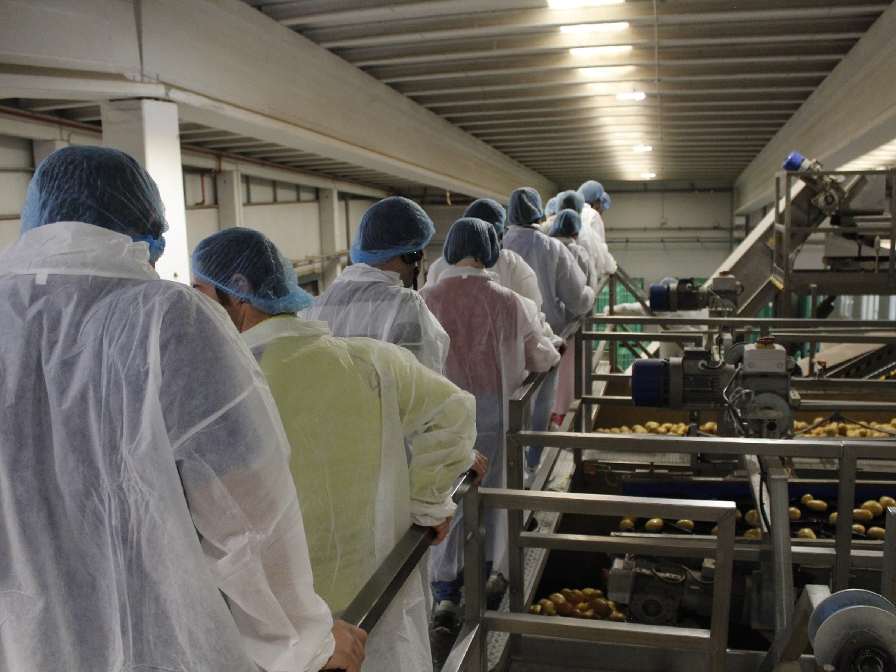Durante la mañana, el grupo ha podido conocer de primera mano las instalaciones de Hijolusa, una empresa líder en el sector de la patata fresca, comprometida con la calidad, la innovación y la sostenibilidad. Los visitantes han recorrido las distintas áreas de la fábrica, desde la recepción y selección de las patatas hasta los procesos de lavado, envasado y distribución, descubriendo con entusiasmo cada detalle del trabajo que hay detrás de un producto que llega diariamente a los hogares de miles de consumidores.
